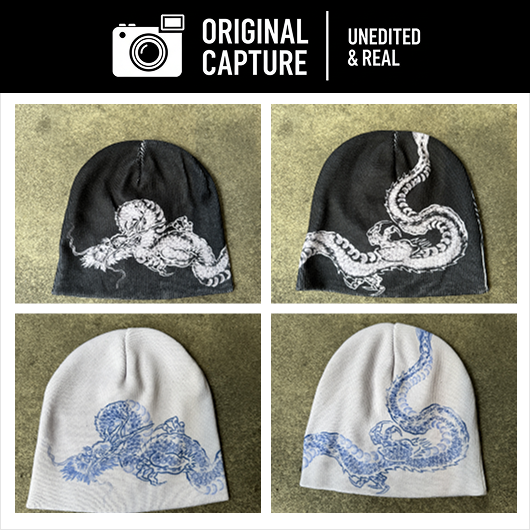 These blend street simplicity with Japanese inspired artwork. The stretchy polyester knit keeps you warm without bulk, while the wave-inspired design adds quiet character to any fit.